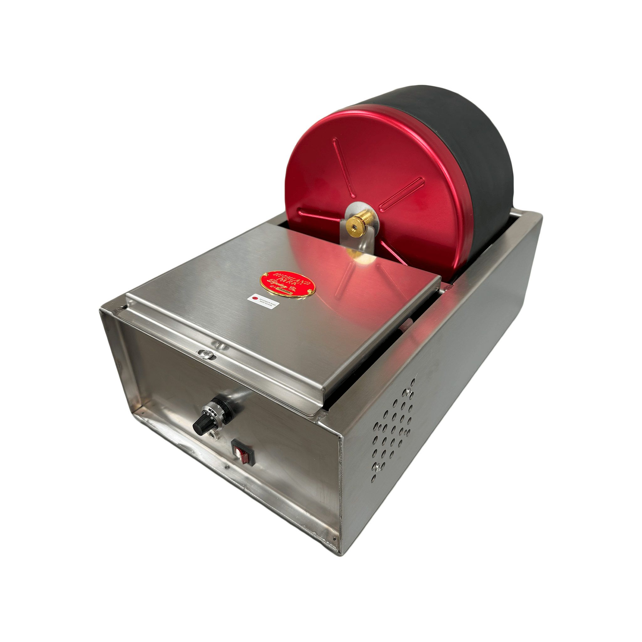 SAW BOX – Welded 7 gauge steel. Inside dimensions 19 ½ inches wide x 10¼ inches deep x 29¼ inches long. Overall height with the hood closed – 43 inches. Stainless drain cap and heavy-duty locking casters included